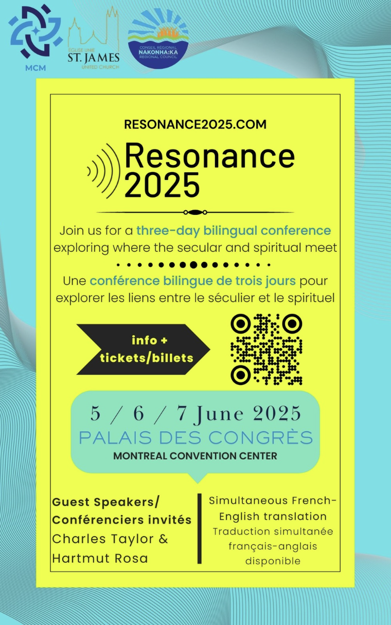 Vous pouvez trouver tous les détails et vous inscrire ici. Les membres de l’Église Unie du Canada bénéficient d’une réduction! Que vous puissiez assister à l’après-midi d’ouverture, à l’ensemble de l’événement ou à un événement intermédiaire, votre présence soutiendra et renforcera cette initiative vitale. Ne manquez pas l’occasion de participer à ce rassemblement important.